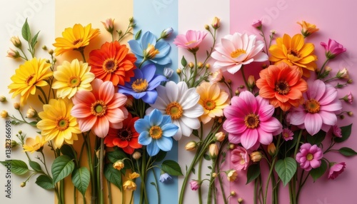 Seasonal Transformation A representation of flowers transitioning through the seasons, showcasing vibrant colors fading to soft pastels.