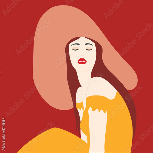 Seated girl in a hat. Fashion illustration.Vector illustration in minimalistic style for posters, cover art, flyer, banner.