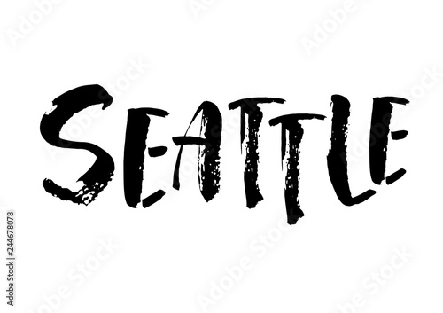 Seattle hand drawn vector lettering. Modern brush calligraphy, ink illustration. Typography design for postcard, poster. Isolated on white background.