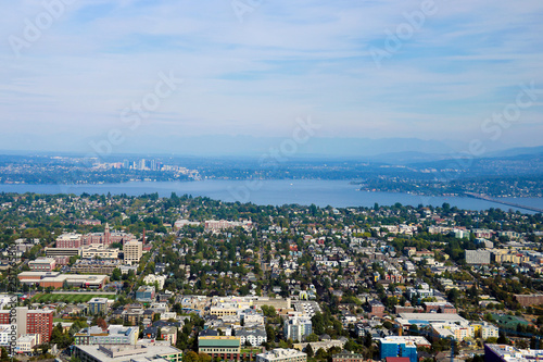 Seattle, USA, August 31, 2018: Seattle cityscape panoramic aerial view.