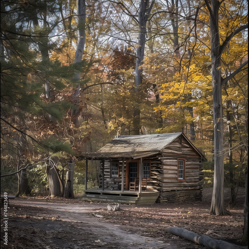 Secluded Rustic Woodland Cabin Surrounded by Autumn Trees