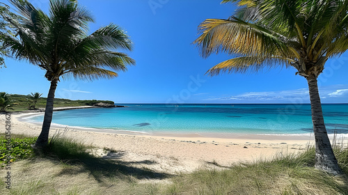 Secluded Tropical Beach with Palm Trees and Turquoise Water