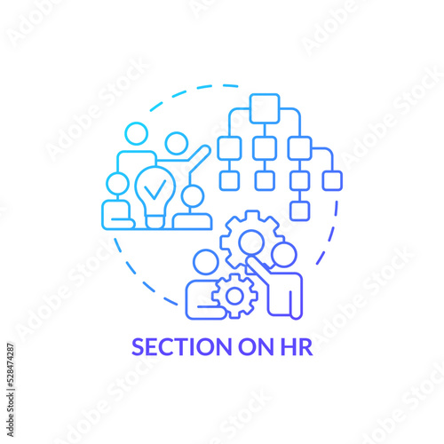 Section on HR blue gradient concept icon. Productive team building. Advantage of business planning abstract idea thin line illustration. Isolated outline drawing. Myriad Pro-Bold font used