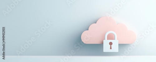 Secure Cloud Storage System with Padlock Icon - Data Protection Flat Design Illustration