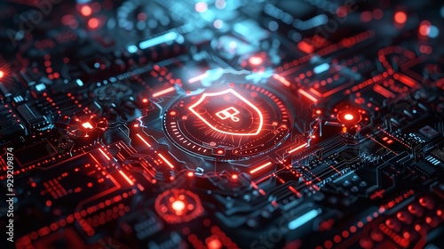 Secure Connection with Digital Shield Icon Close-up for Data Protection and Cybersecurity