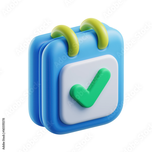 Secure your schedule with this modern 3D calendar icon featuring a prominent green checkmark for completed tasks and appointments.