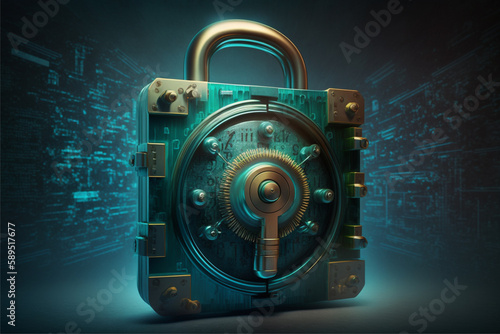 Security concept Lock on digital screen blu
