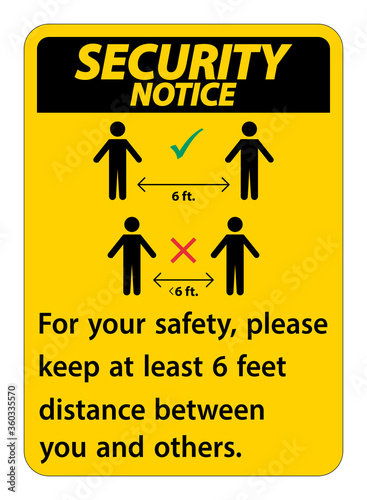 Security Notice Keep 6 Feet Distance,For your safety,please keep at least 6 feet distance between you and others.