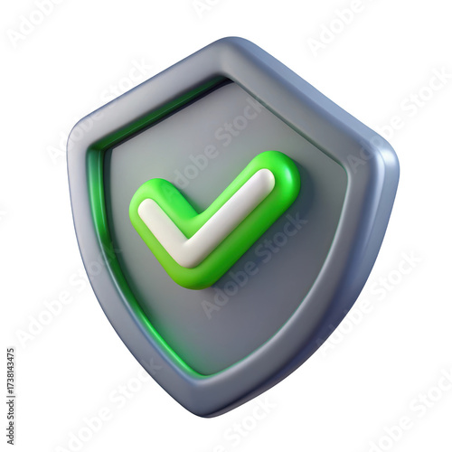 Security shield icon with green check mark depicting protection and approval assurance3d illustration isolated on transparent background
