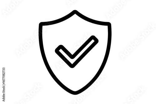 Security shield with check mark icon. Protection, safety, and guarantee concept. Verified and approved symbol for web design, apps. Quality, trust, and validation pictogram.