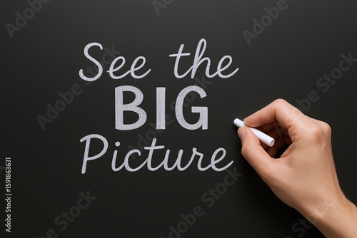 See the Big Picture Handwriting Message on Blackboard with Chalk Close-Up.