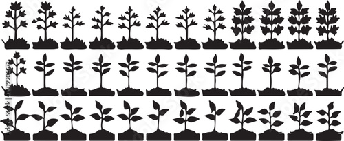 Seedling Silhouette: A symbolic representation of the stages of growth of a small plant, meticulously detailed to evoke feelings of nature's potential