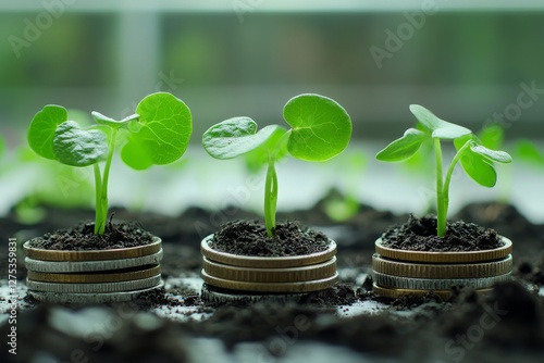 Seedlings on Stacked Coins: Symbol of Financial Growth and Sustainability