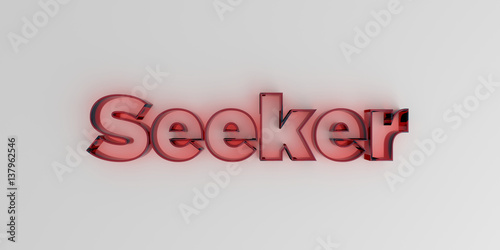 Seeker - Red glass text on white background - 3D rendered royalty free stock image.