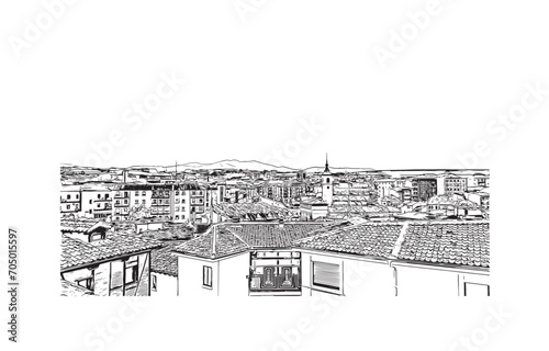segovia city in spain. Hand drawn sketch illustration in vector.