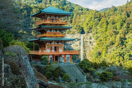 Seiganto-ji Sanjuno-to pagoda and Nachi Falls, Nachisan, Wakayama, Japan