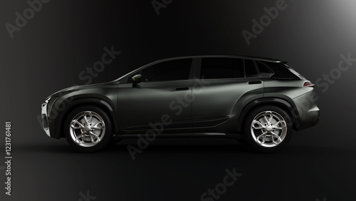 Seitenansicht eines kleinen Crossover PKW in eleganter schwarzer Farbe mit Lichtreflexen
