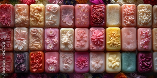 Selection of natural handmade soap bars, aromatherapy. AI generated.