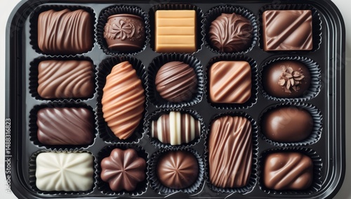 Selection of sweet chocolate pralines packaged and isolated on a background
