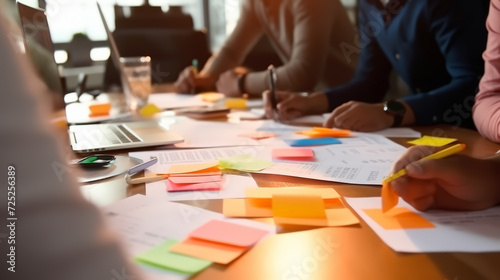 Selective focus Teamwork employee have meeting and workshop to brainstorm for strategy of Business and marketing plan