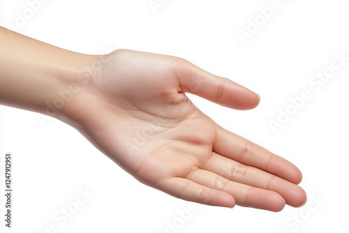 Selective focus bare hand isolated on white background, Hand gesture model for commercial advertisement, Give woman hand gesture.