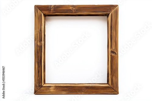 Selective focus wooden picture frame isolated on white background, Wooden square item frame on white.