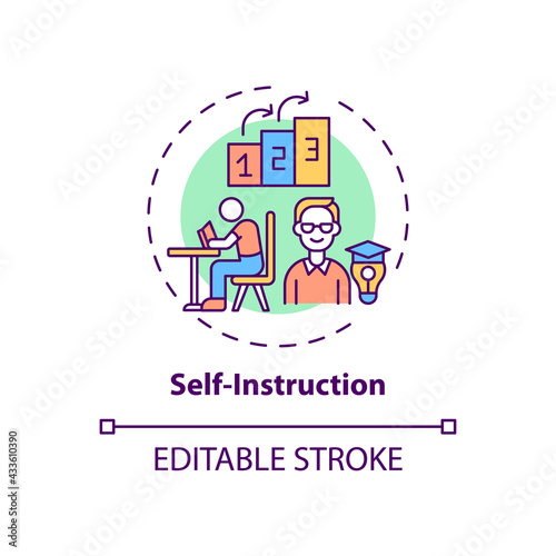 Self instruction concept icon. Personal management for work productivity. Skill improvement. Self control idea thin line illustration. Vector isolated outline RGB color drawing. Editable stroke