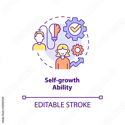 Self-growth ability concept icon. Top soft skill in workplace abstract idea thin line illustration. Personal development. Isolated outline drawing. Editable stroke. Arial, Myriad Pro-Bold fonts used