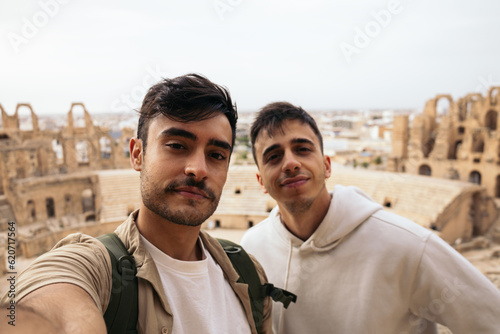 Selfie of tourists in the amphitheater of El Djem, Tunisia