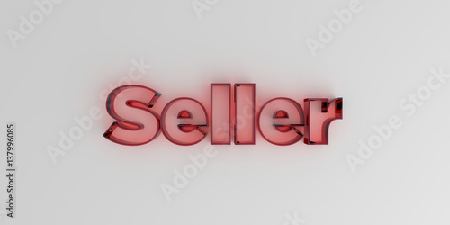 Seller - Red glass text on white background - 3D rendered royalty free stock image.