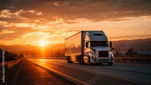 Semi Truck on Highway at Sunset, Transportation, Freight, Logistics, Delivery, Trucking