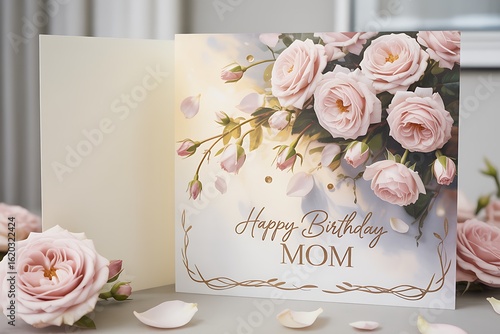 Send heartfelt birthday wishes with this beautiful card featuring delicate pink roses, perfect for celebrating Mom's special day with love and elegance.