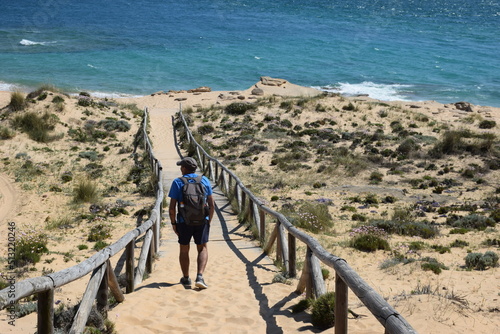 senderista en la playa de MONUMENTO NATURAL DEL TOMBOLO DE TRAFALGAR (2)