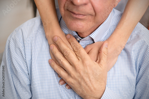Senior care concept, caregiver and senior hands