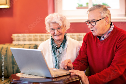 Senior couple reading news from the internet