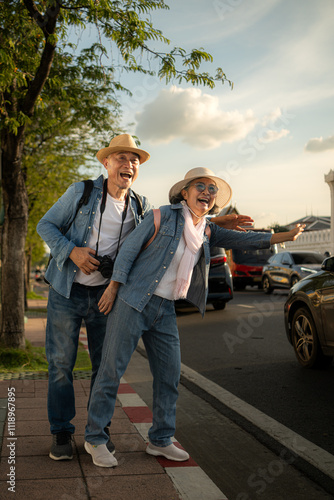 Senior couples' tourist activities around the Grand Palace, Thailand