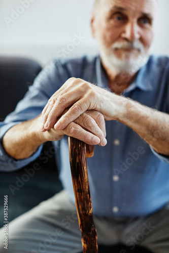 senior disabled man walking cane stick portrait health retirement elderly