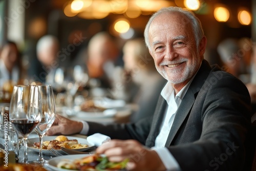Senior Executive Networking with Clients at Elegant Business Lunch in High-End Restaurant - Medium Shot
