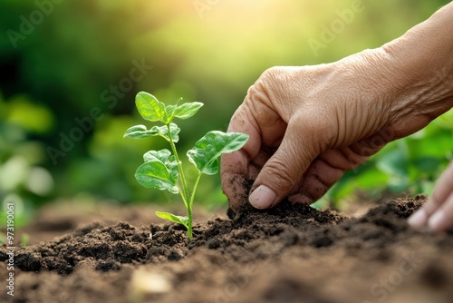 Senior Hands Planting Seedling in Garden Environmental Care and Sustainability with generative ai
