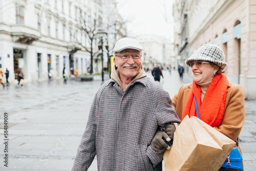 Senior Man and Woman Shopping in City