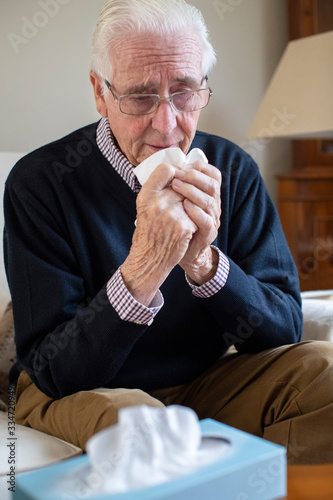Senior Man At Home Suffering With Cold Or Flu Virus