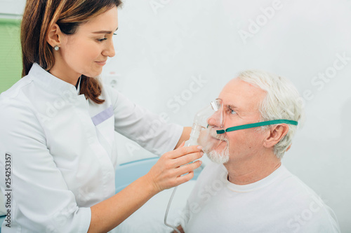 Senior man preparing to procedure inhalation at hospital