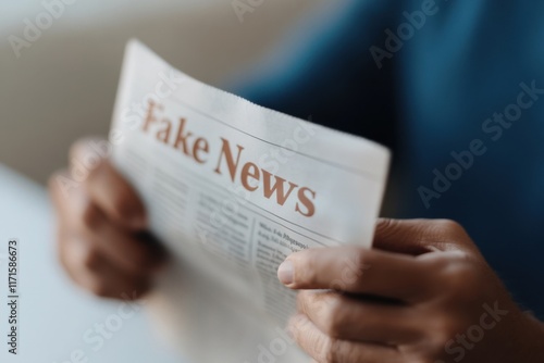 Senior man reading fake news on newspaper