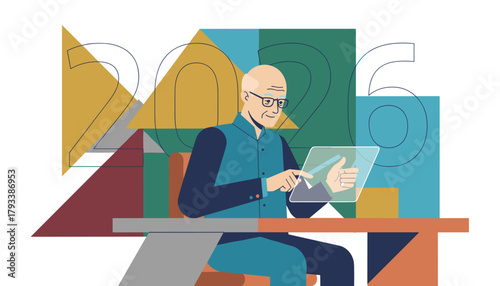 Senior professional using future technology for 2026 planning and business forecast