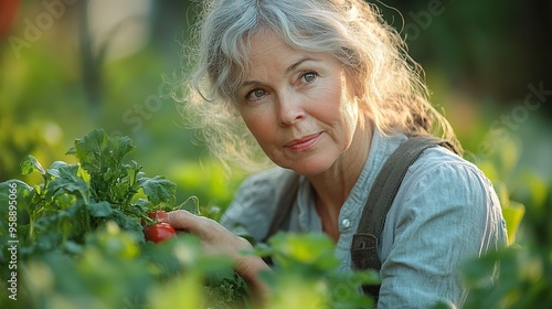 senior woman in garden at home watering vegetables