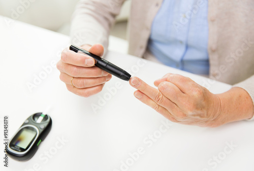 senior woman with glucometer checking blood sugar