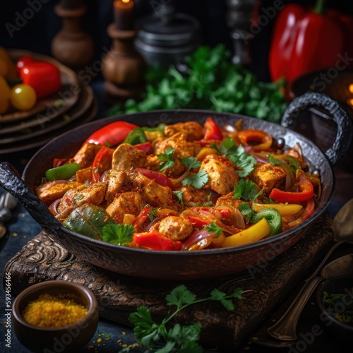 Sensory Delights - Colorful Pakistani Jalfrezi Dish with Fresh Vegetables Generative Ai