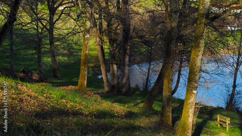 Sentier de balade le long d'un étang, dans le Gers. Le cadre, naturel, est idyllique