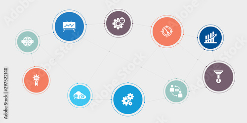 seo 10 points circle design. seo and web, seo badge, cloud, configuration round concept icons..