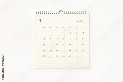 September 2021 calendar on white background. Calendar background for reminder, business planning, appointment meeting and event.